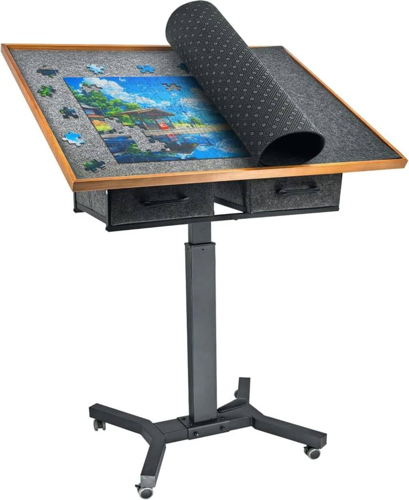 Réaliser un puzzle est bien plus qu’un simple passe-temps ; c’est un défi intellectuel captivant et une source inépuisable de plaisir. Pour les passionnées comme moi, le confort et l’ergonomie sont essentiels pour apprécier cette activité à sa juste valeur. La FATIVO Table Puzzle répond parfaitement à ces exigences. Avec sa hauteur réglable, son plateau inclinable et ses tiroirs de rangement ingénieux, elle est spécialement conçue pour offrir une expérience de jeu optimale, combinant praticité et plaisir. Cette table deviendra rapidement l’alliée incontournable de vos longues sessions de puzzle.